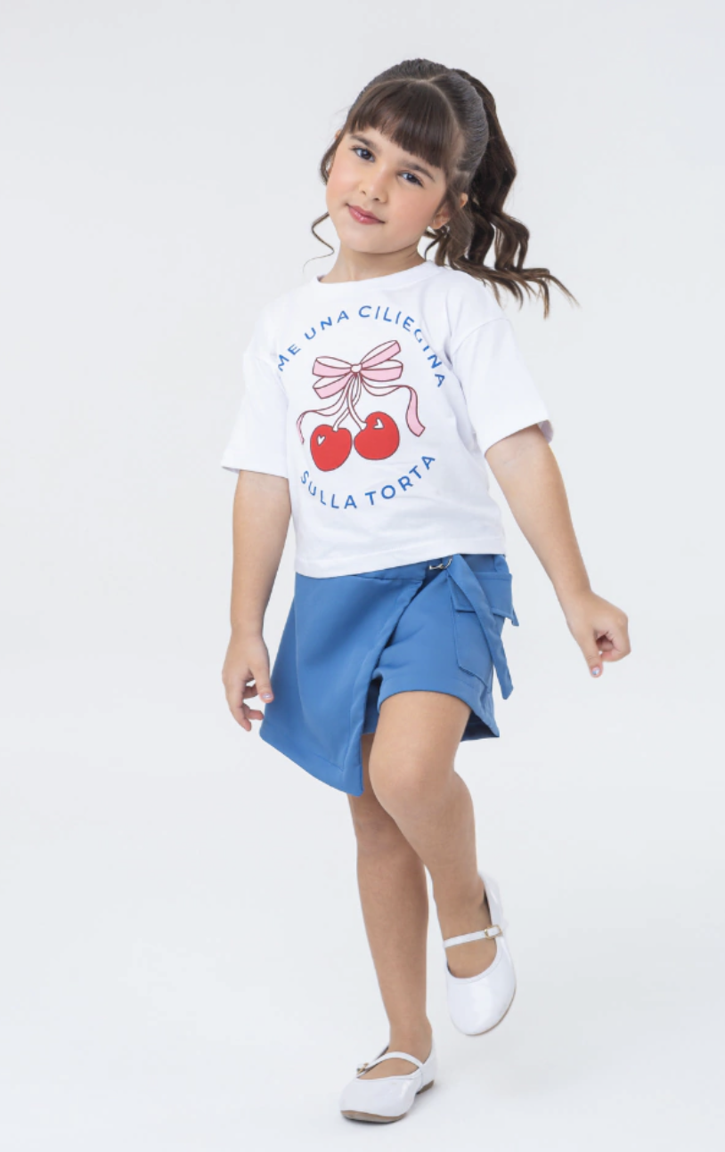 O Conjunto Safira é uma opção prática e estilosa para crianças, composto por camiseta branca com estampa e shorts azul. Confeccionado com tecido confortável e resistente, garante liberdade de movimento e durabilidade para o dia a dia. A camiseta possui modelagem clássica e gola redonda, enquanto o shorts tem cós elástico para ajuste perfeito. Ideal para ocasiões casuais, o conjunto facilita a combinação e oferece conforto durante as atividades infantis.