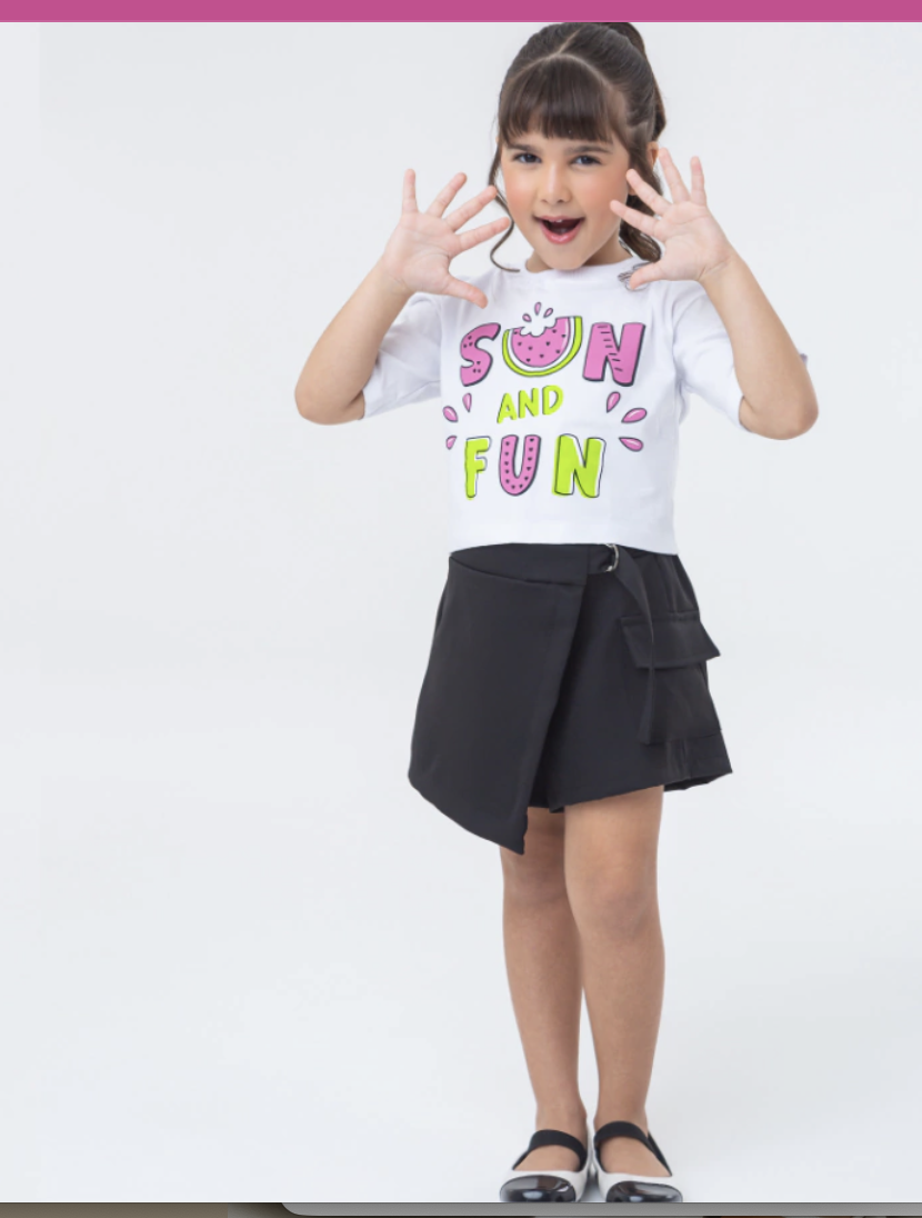 Apresentamos o Conjunto Safira, ideal para meninas que buscam conforto e estilo. Este conjunto inclui uma saia short preta que une praticidade e elegância para o dia a dia infantil. O tecido oferece toque macio e material leve, facilitando a movimentação das crianças com liberdade e conforto. Sua cor preta permite combinações versáteis para diversas ocasiões, do passeio casual à festa com amigos.