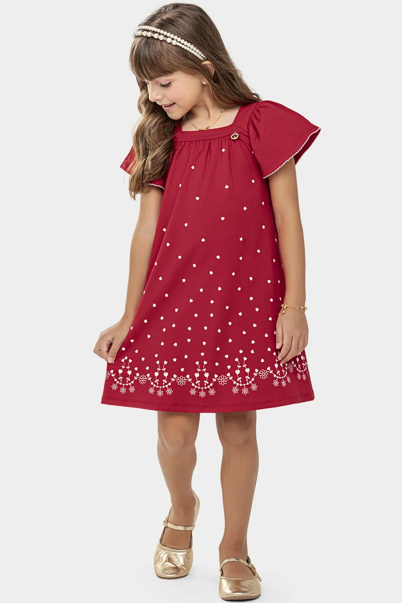O Vestido Luna infantil é a escolha perfeita para momentos especiais e confortáveis. Confeccionado em tecido leve e macio, proporciona sensação de frescor e liberdade para as crianças. Seu design vermelho vibrante com delicados bordados acrescenta charme e elegância, tornando-o ideal para festas, eventos ou uso diário com estilo. Com mangas curtas e corte solto, favorece a mobilidade e o bem-estar das pequenas.